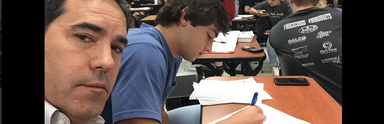 Što učiniti kad vaše dijete stalno pravi razrednog klauna od sebe? Jedan otac iz Teksasa zaprijetio je svom sinu da će ga pratiti u školu i pohađati nastavu s njim. Sin ga nije shvatio ozbiljno. Pogriješio je.